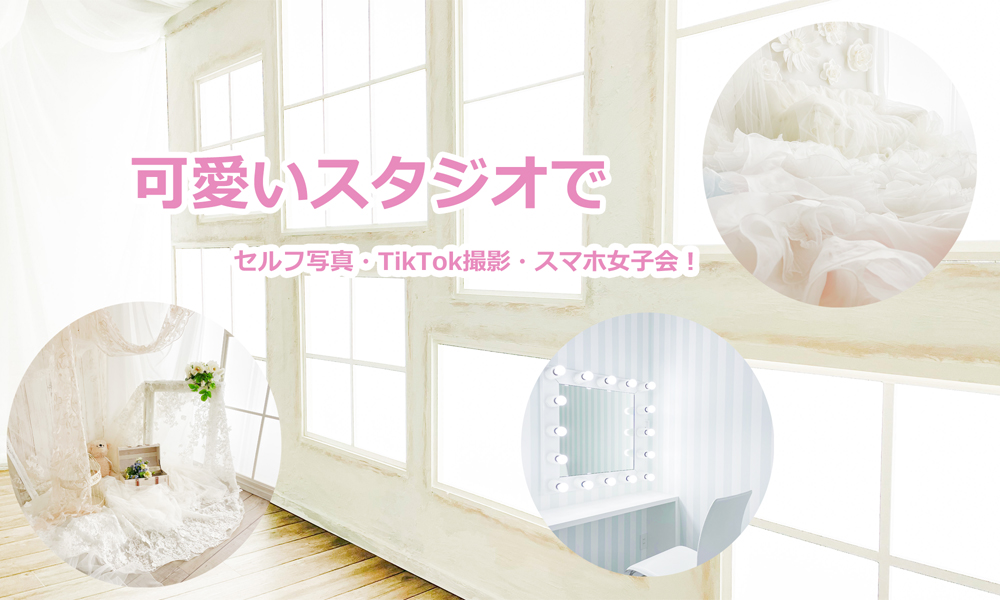 可愛いスタジオでスマホ女子会やTikTokなどの動画撮影に♡